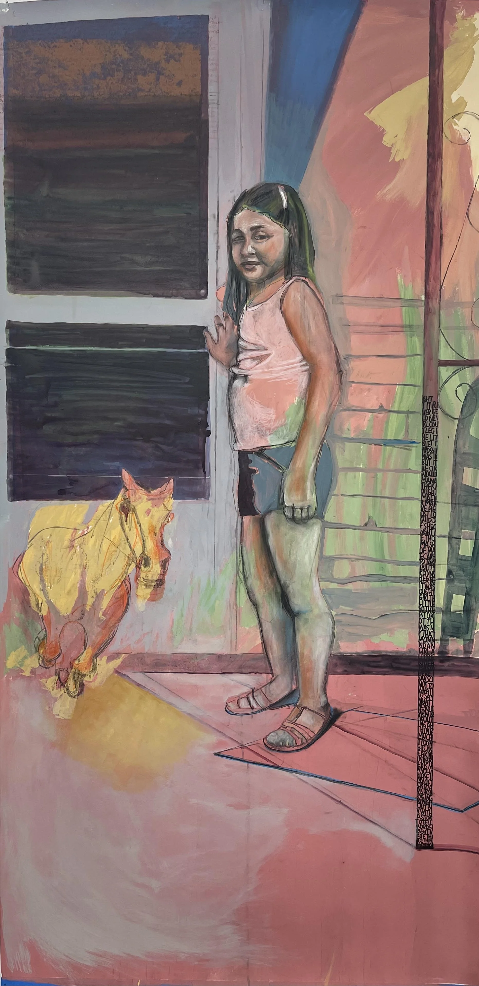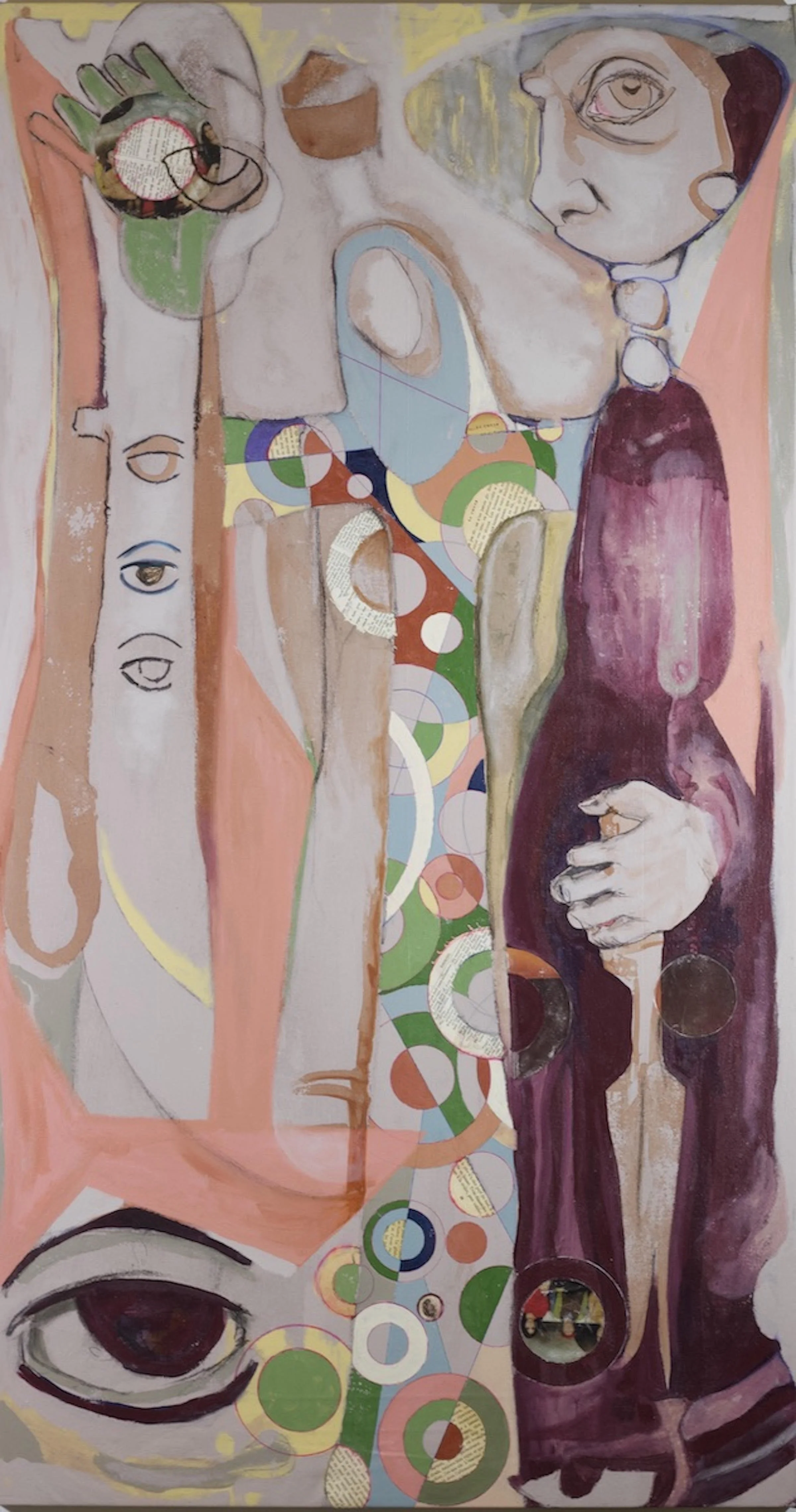 Ecco, Lucy Rovetto - Acrylic paint, collage, ink, charcoal on muslin, 54x29 in., April 2022 - photo courtesy of the artist