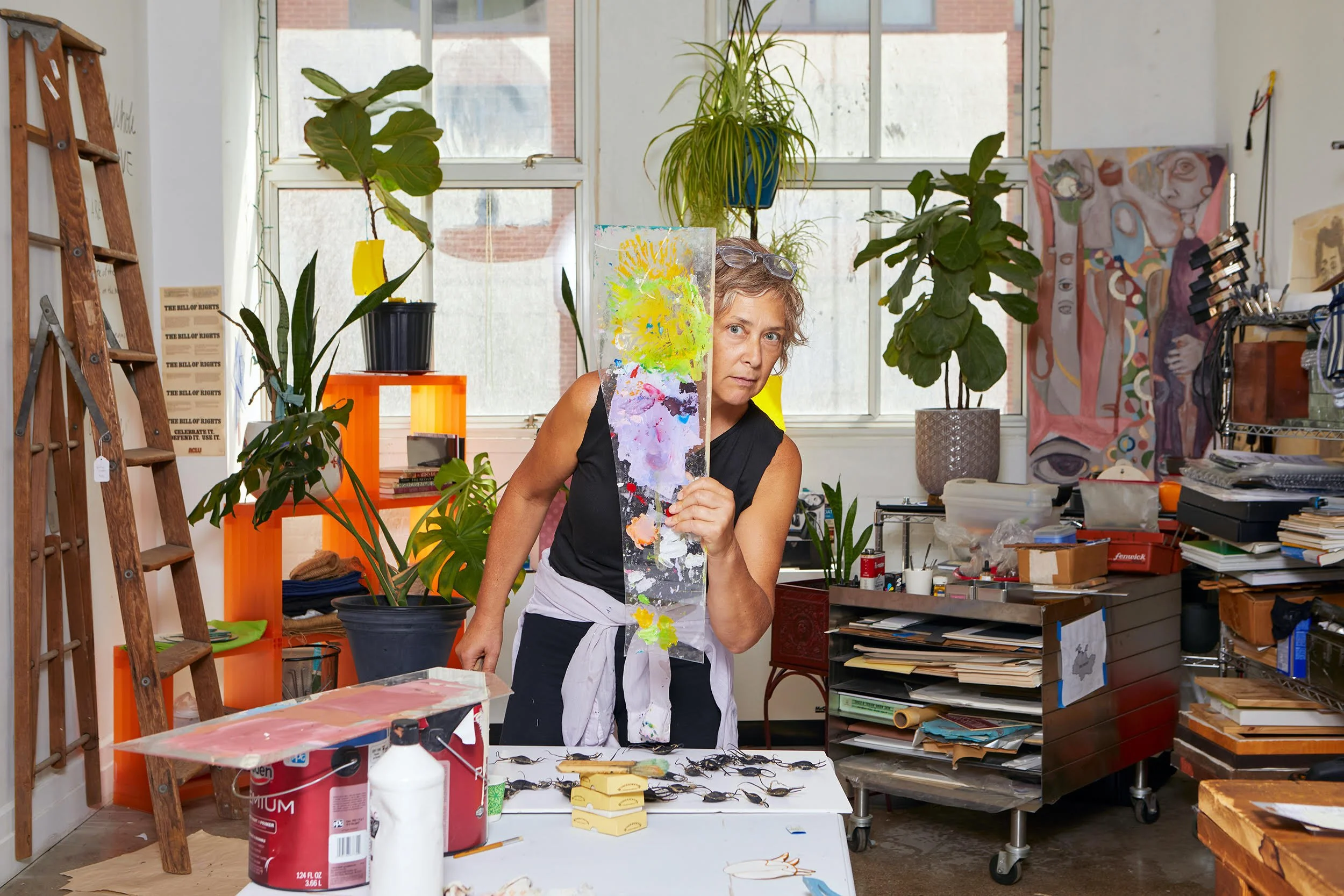 Lucy Rovetto is a Jersey City-based painter, printmaker, and curator whose work asks hard questions about power, fear, and the structures we don't let ourselves question. Raised in Greenville, she spent years traveling and working internationally before returning to Jersey City, where she won a city artist live/workspace lottery and never looked back. She's curated exhibitions at JCTCI and the Museum of Jersey City History, and her studio is open by appointment.